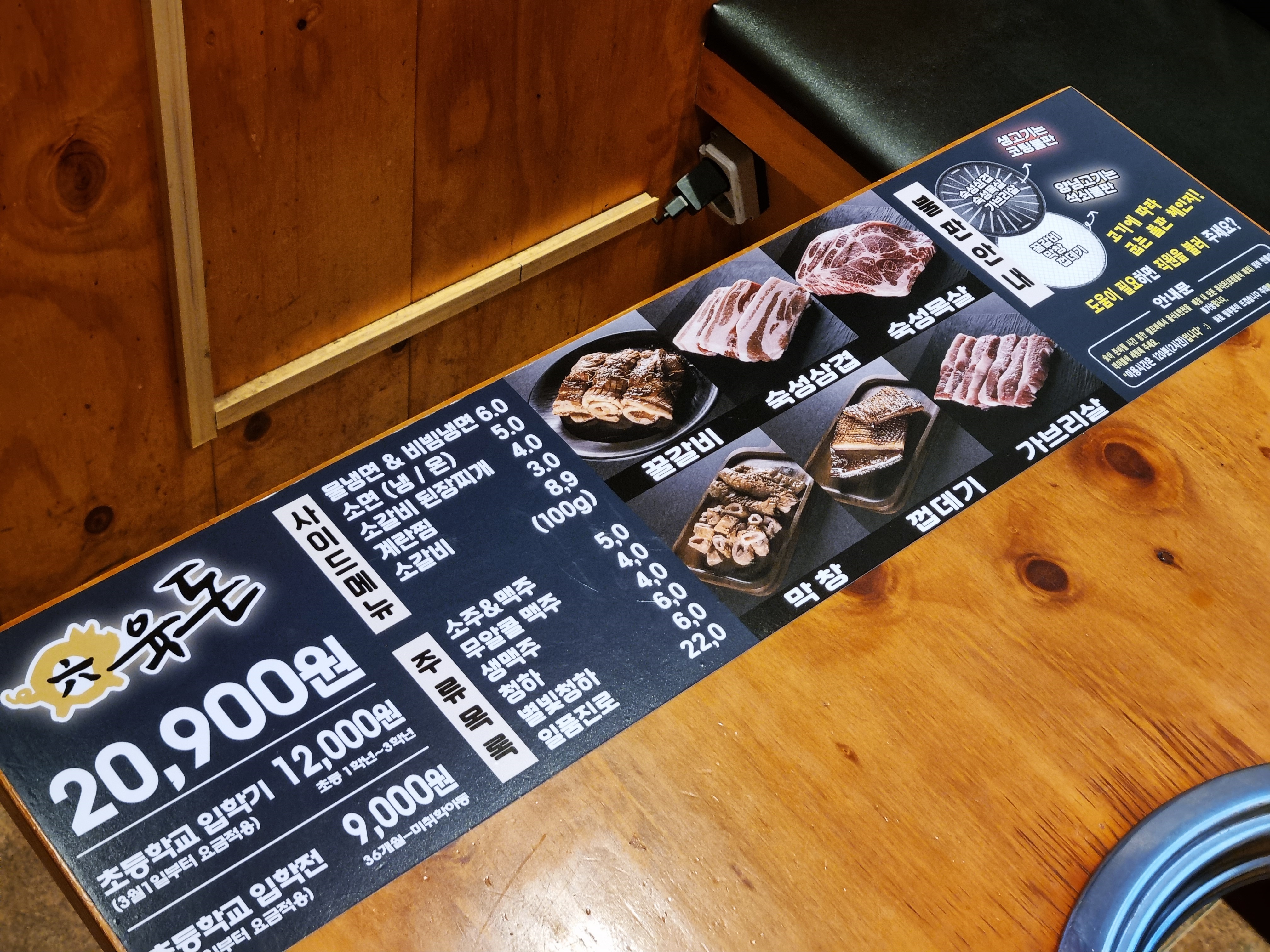 그런데 육돈 본점에서는 20,900원이라는 가격에 삼겹, 목살, 가브리살은 물론 꿀갈비랑 껍데기까지 무제한으로 먹을 수 있어 정말 가성비 최고입니다.